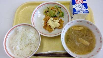 今日は、宮崎のご当地グルメで有名な『チキン南蛮』です。揚げた鶏肉に甘酢を絡め、タルタルソースをかけけています。
