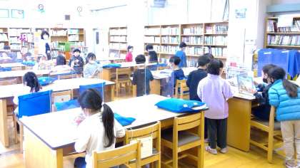 休み時間、図書室には、多くの子供たちが本を読みに来ていました。