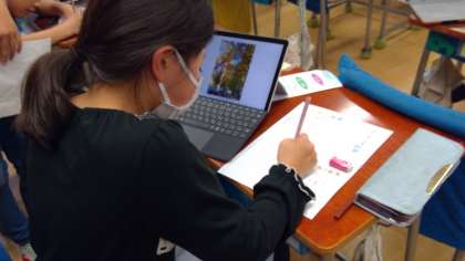 国語の「書くこと」の学習で学んだことを生かして、見学して分かったことや気付いたこと、思ったことなどを、新聞に書き表していました。