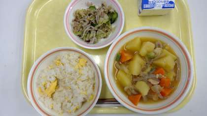 ・しらたまごはん ・肉じゃが ・ゆかり和え ・牛乳