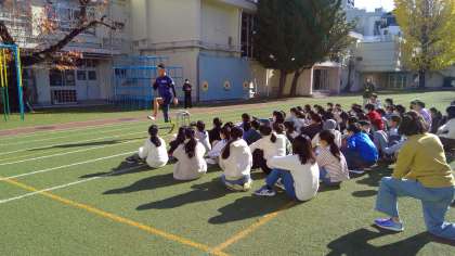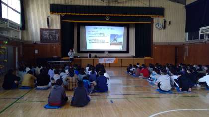 講話では、『夢』をテーマに「自分を受け入れること」「なりたい自分を信じること」「周りの人への感謝を忘れないこと」の大切さについてお話をいただきました。体験では、井谷選手から走り方のポイントを教えていただいた後、一緒に走る活動を行いました。井谷選手の走りを間近で見ることができ、「速かった!」「すごかった!」と感動していました。