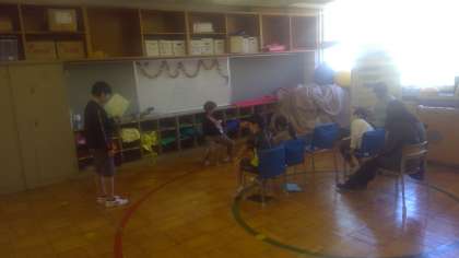 12月19日に、1年生の誕生会を行いました。飾りつけは誕生月以外の人全員でしました。誕生月の人がリクエストした「ドラえもん」の歌を歌ったり、「イス取りゲーム」などをしたりして盛り上がりました。最後は一人ずつメッセージを読み上げ、おめでとうの言葉をかけて祝福しました。