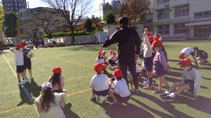 「子供を笑顔にするプロジェクト」の一環で、FC東京の方々にお越しいただきました。跳んだり、走ったり、ボールを蹴ったりと、様々な動きを体験し、サッカーを経験したことのない児童も、楽しく活動することができました。