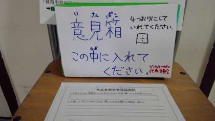 代表委員会の児童が話し合い、校内に「意見箱」を置くことになりました。