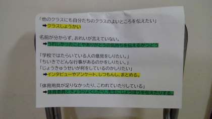 そして、給食の時間に、放送とパワーポイント資料を使い、「学校がもっと快適に過ごせるように、もっと楽しくなるように意見を寄せてください。」と、全校児童に呼びかけました。