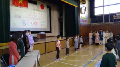 1・2年生は、日本の四季の様子を言葉と歌で紹介しました。その後、ベトナムの挨拶の仕方やお正月の過ごし方を教えていただきました。また、歌を教えていただき、一緒に口ずさみました。