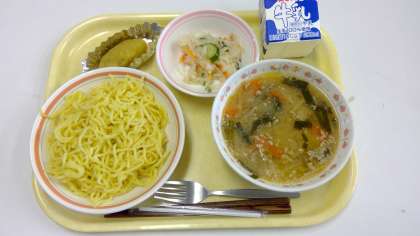 『今日は味噌ラーメン』『デザートはスイートポテトでしょ』と、すれ違いざまに沢山声をかけられました。児童の皆さんは、今日の献立を楽しみにしていたようです。