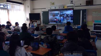 6年生は、昨日と今日の二日間にわたり、上原小学校の6年生と、シブヤ科のプレゼン交流をしました。今回は、オンラインでつないで行いました。