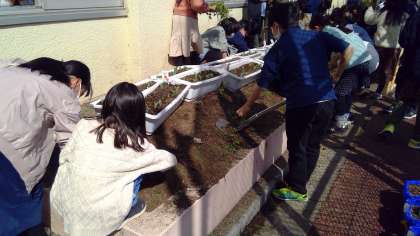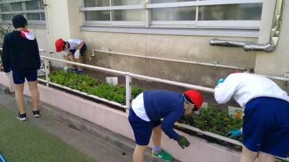 今日は、いずみ学級と1年生、4年生が清掃活動に取り組みました。1年生は、体育館の掃除を担当しました。いずみ学級と4年生は、花壇の草取り等の手入れに取り組みました。