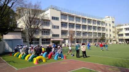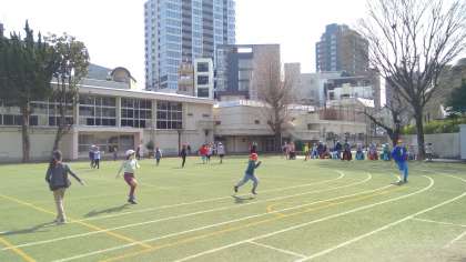 校庭の半分を使って思い切り走り回り、楽しそうでした。