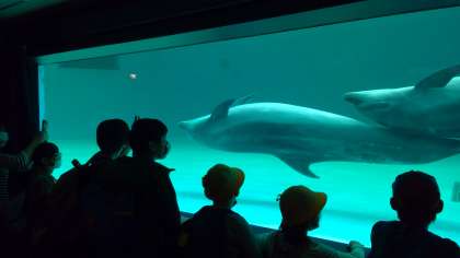 水族館では、水槽の中の魚たちをじっくりと見たり、イルカショーを楽しんだりしました。