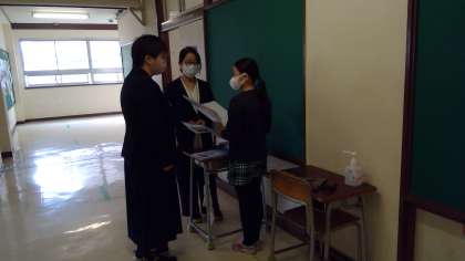 お別れの会の後、各学級では、担任から一人一人に言葉を伝えながら修了証(通知表)を手渡したり、学年末の会(解散式?)をしたりしていました。しんみりする時間があったり、みんなで大笑いする瞬間があったり、それぞれ、とてもよい時間を過ごすことができたようです。