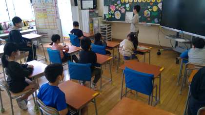 新たに1年生を迎え、本日より全学年が揃いました。朝の会の時間に一人ずつ自己紹介をしました。進級した学年、名前、好きな食べ物・スポーツ・動物を言ったり、質問を受けたりして、みんなのことをたくさん知ることができました。