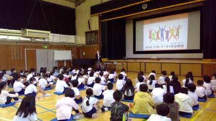4年生は、講師の方をお招きしてスマホ・携帯電話の正しい使い方について、学年全員でお話を聞きました。