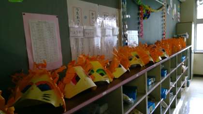 1年生は、富谷スポーツフェスティバルで「みんなともだち!! ライオンキング☆」というダンスをします。今日は、自分がかぶるライオンのお面をつくっていました。