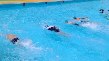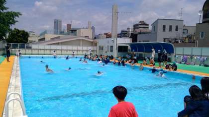 今年度初めてプールに入ったのは6年生でした。水温はあまり高くありませんでしたが、気温が高かったので、気持ちよさそうでした。