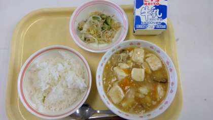 ・ごはん ・豆腐の五目煮 ・もやしの梅肉和え ・牛乳
