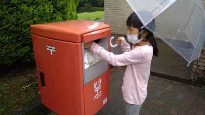 おうちの人にあてて書いたはがきもポストに投函しました。