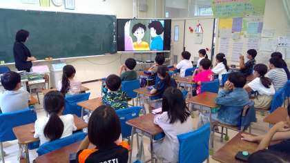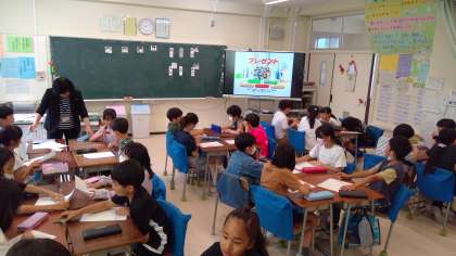 4年生は、人権擁護啓発活動の一環として、「人権の花」を育てる活動に取り組んでいます。そして26日(月)に、人権擁護委員のみなさんをゲストティーチャーにお招きして、人権教室が開かれました。