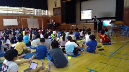 7日の1・2時間目に、体育館にて上水道の出前授業を行いました。