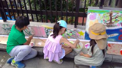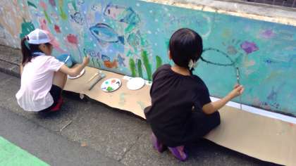 たくさんの子供たちが集まり、「街を美しくしよう」というコンセプトのもと、アミイゴさんを一緒に、思い思いにカラフルな絵を描いていました。
