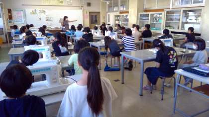 5年生は、「ミシンでソーイング」の学習に取り組み始めました。