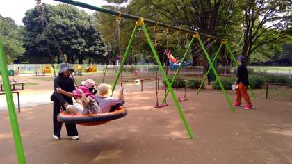 昼食のあとは、砧公園に行き、みんなの広場で遊びました。様々な遊具で遊んで、とても楽しそうでした。