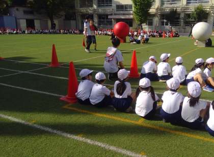 10月19日に全校大玉送りの練習をしました。1年生は、大きな玉を見て大騒ぎ!6年生が転がしてくる大玉を受け取って転がします。大玉に触れるのは一瞬ですが、みんな楽しそうでした。