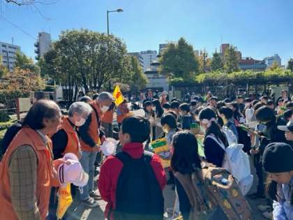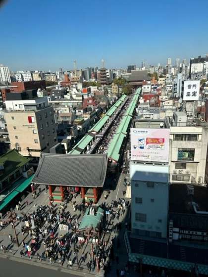 午前中は浅草に行き、ボランティアガイドさんと一緒に浅草寺の見学をしました。古くからにぎわう浅草の町ですが、1960年代ごろににぎわいがなくなってしまった時期がありました。現在のにぎわいを取り戻すために、どのような取り組みが行われたのかについて調べ、実際に見学して学びました。伝統を大切にしながらも、新しいことを取り入れて、魅力的なまちづくりを進め、現在ではたくさんの外国人観光客も訪れるまちとなりました。ボランティアガイドさんと別れた後は、浅草文化観光センターの展望台から、浅草のまちを一望しました。