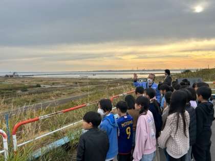 午後は、中央防波堤を見学しました。私たちが出したごみは、その後どのように処理されているのかを、実際に見て回りました。燃やすごみを焼却した後の灰を埋め立てるところ、粗大ごみを細かく砕いて資源と燃やすごみとに選別するところ、不燃ごみを細かく砕いて分別し資源にするところなどを見学しました。一般の人はなかなか入れない場所なので、とても貴重な経験となりました。