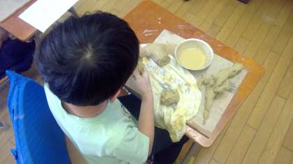 初めに、つくりたい動物の絵を紙に描きました。それを見ながらテラコッタ粘土をよくこね、徐々につくりたい動物に仕上げていきました。カバ、龍、ネコ、ヘビなど様々な生き物を考え、細かい部分に注意しながらつくりました。