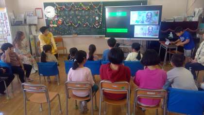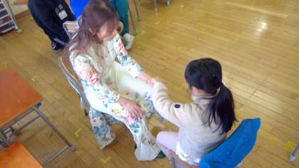 10月の国際交流デーでベトナムの方々から伺った話を受けて、4・6年生は調べ学習をし、それを発表しました。また、ベトナム語でフルーツバスケットをしたり、爆弾ゲームをしたりして盛り上がりました。ベトナムの方からは、ベトナムの手遊びを教えてもらい、ペアになってゲームをしました。