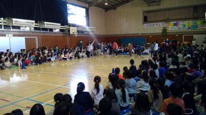 5年生は、6年生に勝負を挑みました。ボッチャのボールを決められたラインにどちらが近付けるかというゲームとクイズでした。会場が楽しい雰囲気に包まれました。