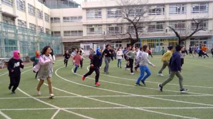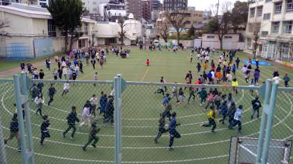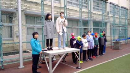今朝、体育朝会があり、4年生以上の児童が、持久走に取り組みました。5分間、自分のペースをキープして走ることを目指しました。進行は、体育委員会の児童が行いました。先生たちも、にこにこしながら走っていました。