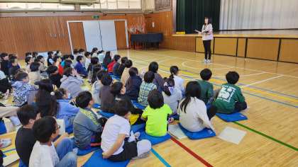 4年生のスローガンを「CHALLENGE」とし、苦手なこと、難しいことにチャレンジして、自分を成長させる1年間にしようと話しました。