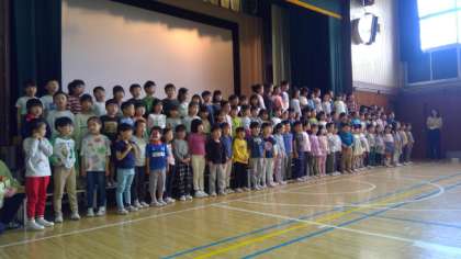 会の最後に、全校のみんなで校歌を歌い、会場中に歌声が響きわたりました。