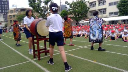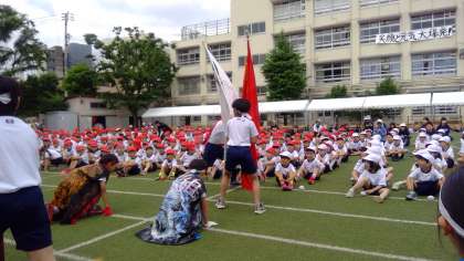 開会式では、児童を代表して、1年生代表の8名が、頑張りたいことを話しました。また、赤組、白組の応援副団長から、全校児童に向けた熱いメッセージが語られました。その後、応援団長の「フレーフレー富谷!」のかけ声に続いて、全校のみんなで互いに応援し合い、富谷スポーツフェスティバルが始まりました。