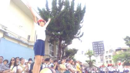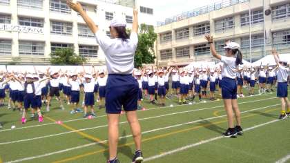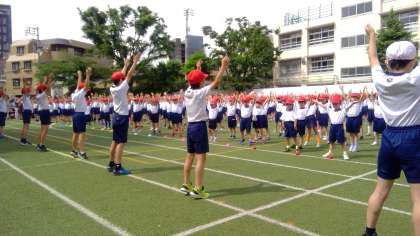 運動委員会の児童の先導で、ラジオ体操を行いました。