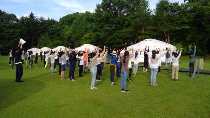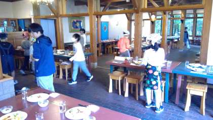 二日目の朝を迎えました。朝会時に、定番のラジオ体操をして、体を目覚めさせます。