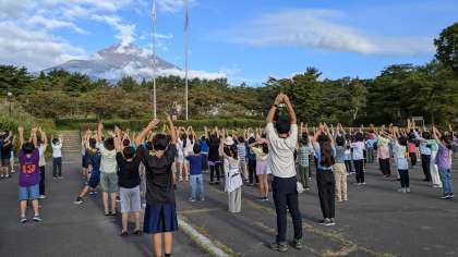 全員で元気に二日目の朝を迎えることができました。今朝は、富士山がとてもきれいに見えました。東京で見るよりも大きく、迫力がありました。