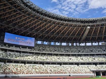 6年生は、渋谷区立小学校陸上記録会に行って来ました。オリンピックなどの国際大会が行われる国立競技場で走ったり跳んだりできるということで、子供たちは気合が入っていました。行きのバスの中では、「楽しみ50%、緊張30%、怖さ20%」と話している児童もいました。