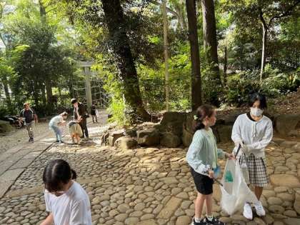 周辺の道にもゴミが落ちている、また、代々木八幡神社の例大祭でもゴミがたくさん落ちているということが分かりました。お菓子や輪ゴムなどのゴミが多かったです。よく落ちていた場所は、石と石の間や、見えにくい草の中です。ゴミ箱があった場所の近くにもゴミが落ちていたので、ゴミを探して拾っての繰り返しが大変でした。