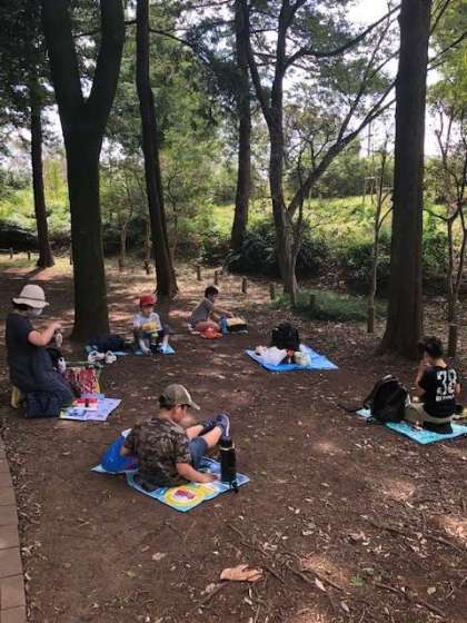 リンゴ狩り後、芦花公園へ。ひまわり畑が印象的でした。アスレチックで遊んだ後、お弁当タイム。ソーシャルディスタンスを踏まえての食事です。