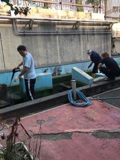 9月30日(水)に主事さん方がカメをプールに引っ越ししていただき、写真の1枚目のように汚れを取ってもらいました。