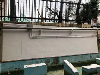 正門の階段を降りると昇降口の左側にビオトープがあります。今はたくさんのカメが住んでいます。ビオトープ自体がかなり傷んでいて、壁も汚れが目立ちますので、創立90周年行事の一つとして、清掃作業及び壁の塗り替えを行いました。