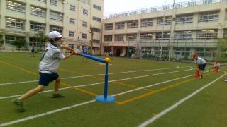 体育では、校庭でティーボールを学習しました。「全員が楽しんでプレーできること」を目標に、ルールや作戦を工夫しました。
