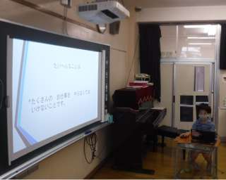 先生、主事さん、栄養士さん、警備員さんなど、校内で働いている人にインタビューし、パワーポイントにまとめて発表しました。発表にはインタビューした人たちが見に来てくれました。子供たちはパワーポイントの出来と発表に手ごたえを感じていました。