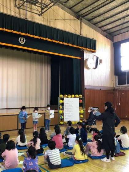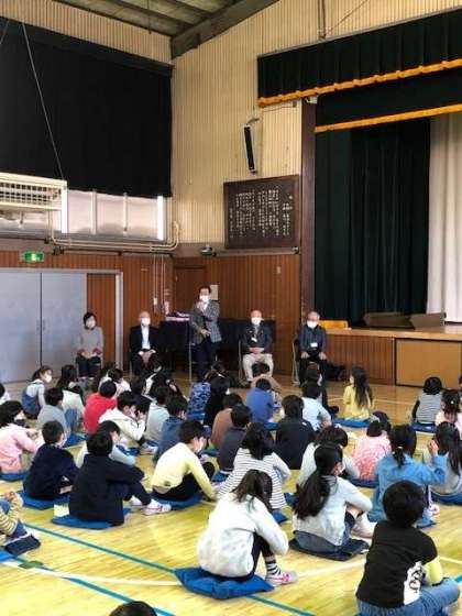 先月の26日、町たんけんの企画などでお世話になっている同窓会の代表の方に、まとめたことを聞いてもらう会を行いました。密を避けるため、体育館でクラスごとに行いました。終了後、同窓会の方々にお声をいただきました。ご高齢の方の来校に関しては、感染症の様子を見て無理のない範囲で実施していきます。