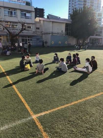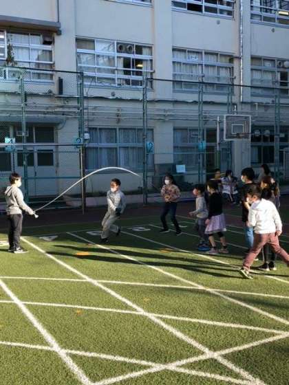 兄弟学年での仲良し遊びは、朝の15分を使って行っています。今日は2年生と4年生。グループごとでの遊びは、感染症対策を踏まえて決めた内容です。回数が増えてきたので、交流遊びや終了後の反省会もスムーズに行っています。日増しに寒くなっています。計画的に外で活動する機会を作っていきます。