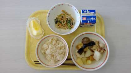 ・茶飯 ・おでん ・胡麻和え ・りんご ・牛乳